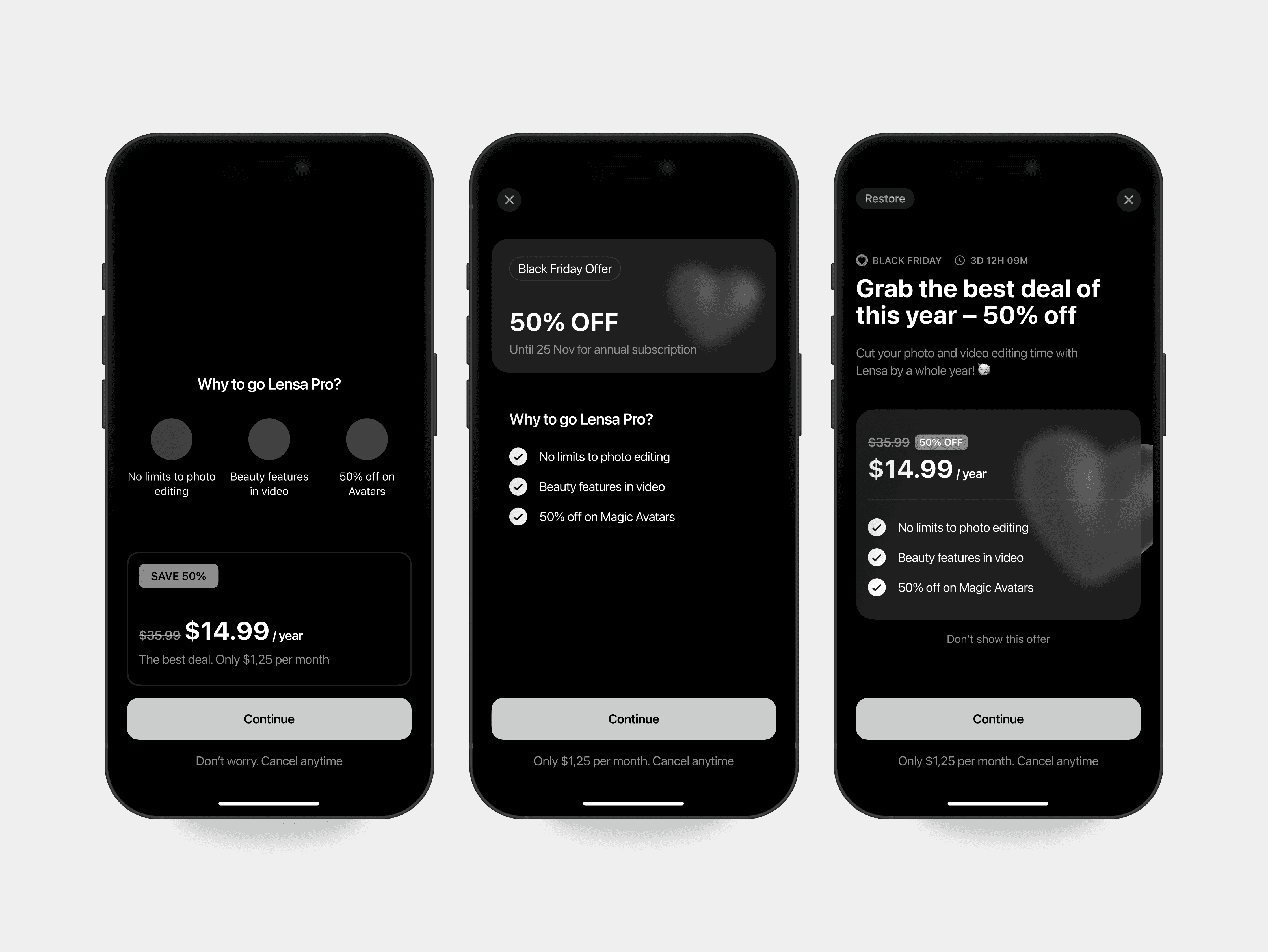 Lensa’s subscription model needed to attract users who wouldn’t normally subscribe at full price. Black Friday was our moment to convert them.